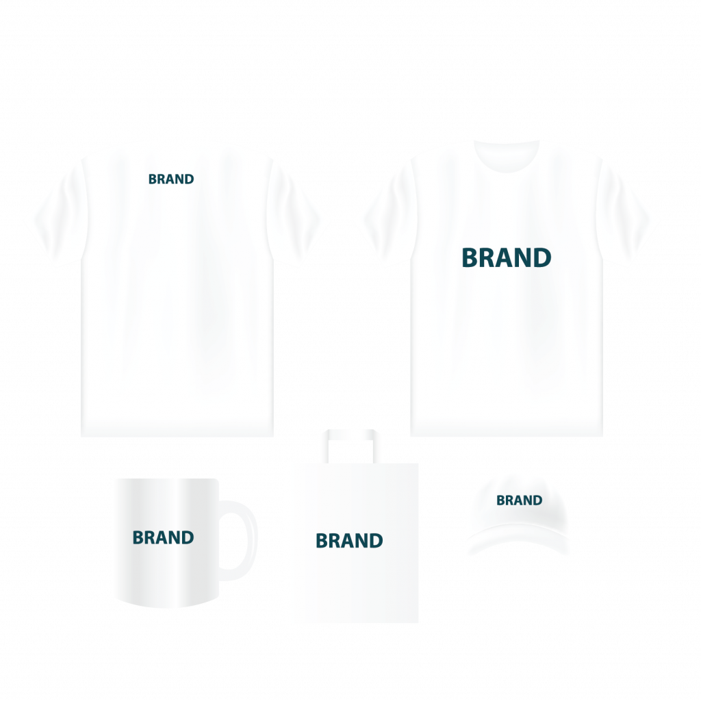Items that are distributed for little to no money and are branded with a logo or phrase to advertise a business, corporate identity, or event.